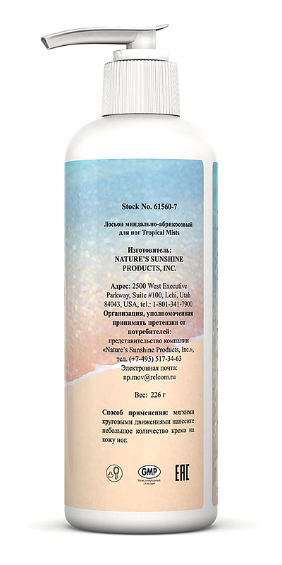Данный лосьон разработан специально для кожи стоп и ног, содержит мощные увлажняющие ингредиенты: алоэ вера, масло зерен абрикоса и масло сладкого миндаля. Натуральный освежающий аромат оказывает успокаивающее воздействие на организм.