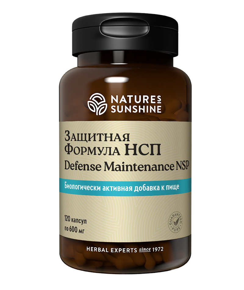 Защитная Формула НСП содержит специально подобранный спектр витаминов-антиоксидантов (А, С и Е), биоэлементов (цинк, селен) и порошок ряда растений, восстанавливающих и укрепляющих иммунитет.