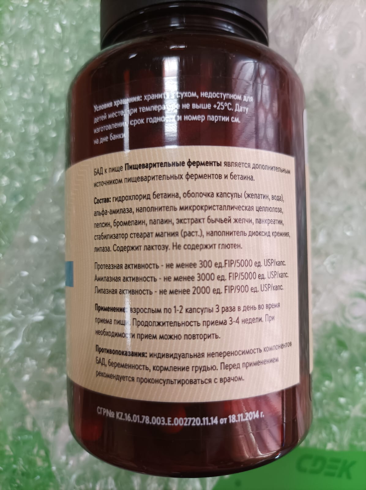 Пищеварительные ферменты компании NSP представляют собой комбинацию ферментов животного и растительного происхождения. Они также содержат источник соляной кислоты в виде бетаина гидрохлорида. Он необходим для тех, у кого желудок выделяет недостаточное количество соляной кислоты.