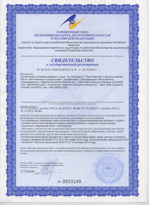 БАД к пище Со Пальметто является дополнительным источником липидо-стерольных соединений (в-ситостерола).